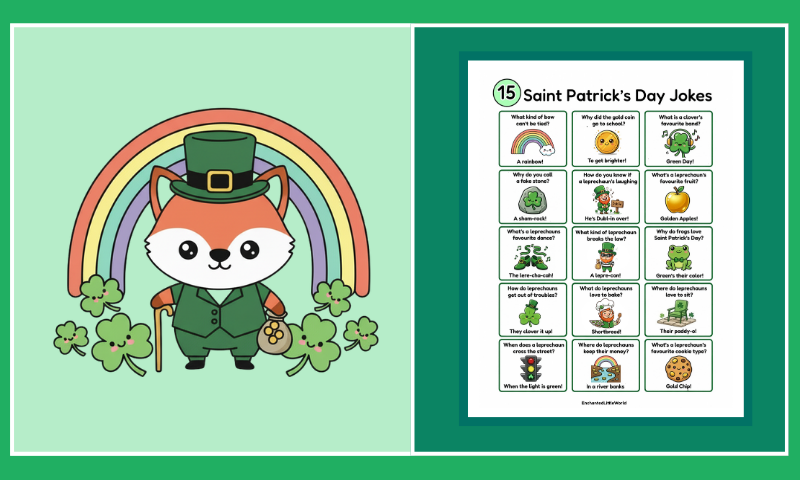 Spread some silly smiles to kids with these 15 free St Patrickโs Day jokes for kids with fun leprechaun humor ๐.