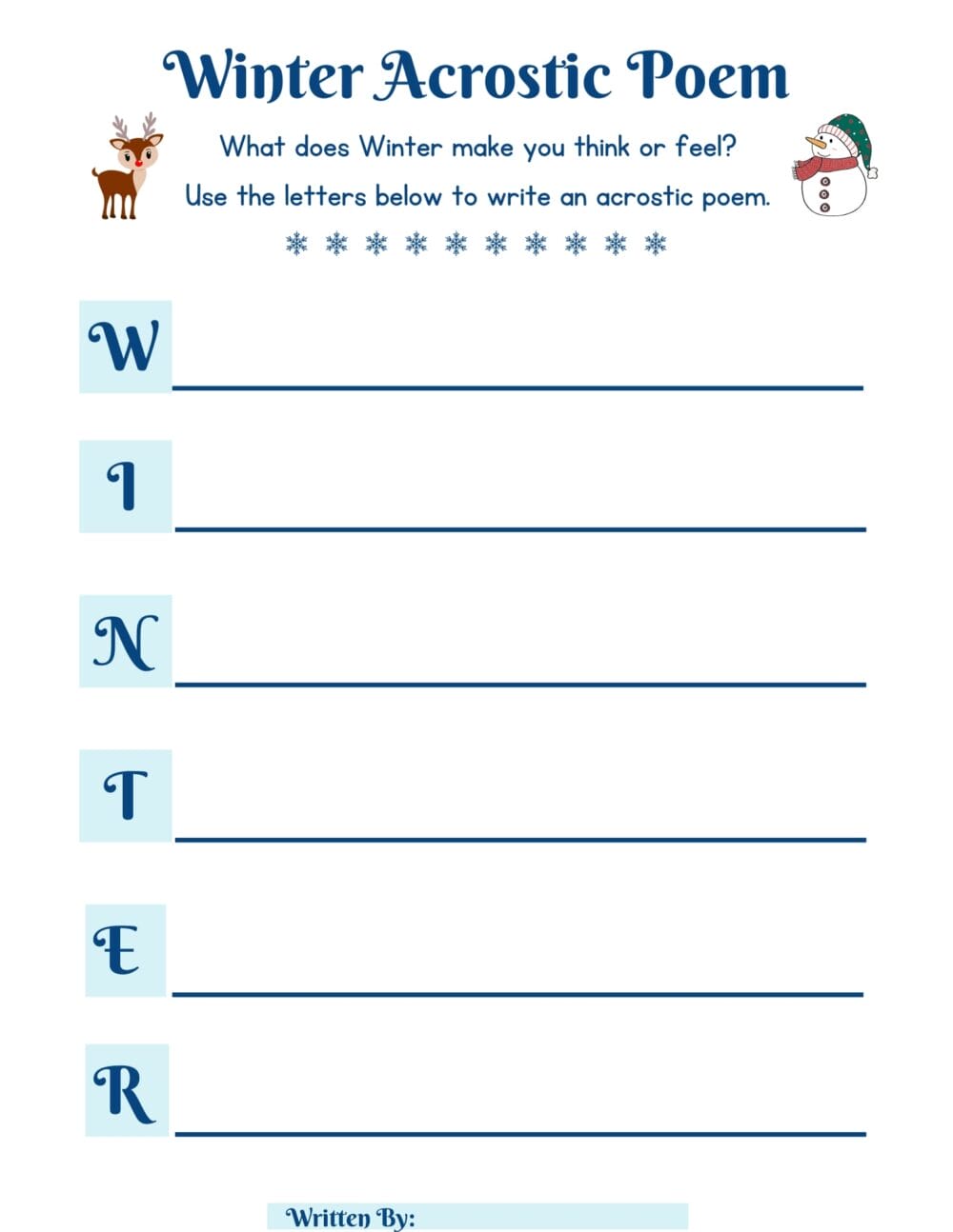 Check out these Free Printable Winter Acrostic Poem Writing. ☃️