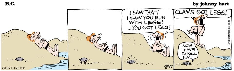 B.C. is a daily American comic strip created by cartoonist Johnny Hart. Set in prehistoric times, it features a group of cavemen and anthropomorphic animals from various geologic eras.
