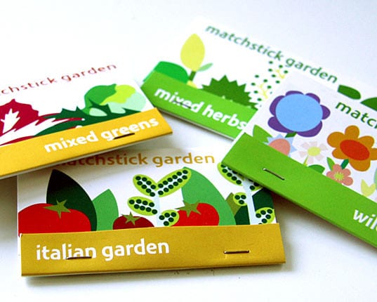Each matchbox has seeds mixed in ready to grow. You simply tear out a match stick, plant it tip first in soil and you will soon have a flower, herb or vegetable garden growing.