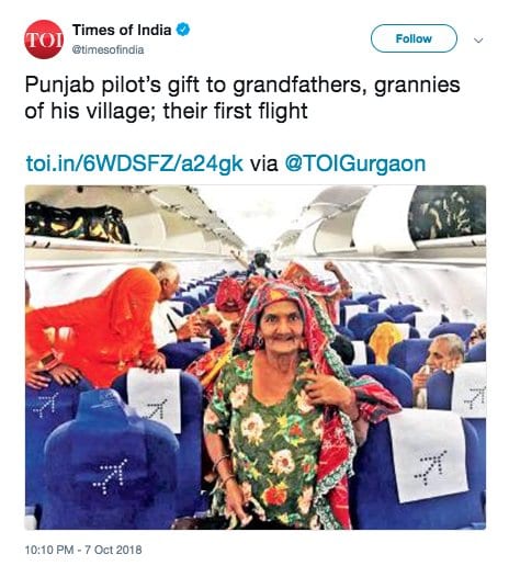 According to the Times of India, Jyani, of the Sarangpur village, had made a promise to the elderly that he would become a pilot and take them all on a flight.