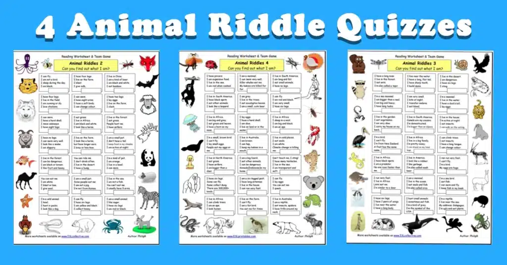 Free Printable: 4 Animal Riddle Quizzes For With Picture Clues 🦁