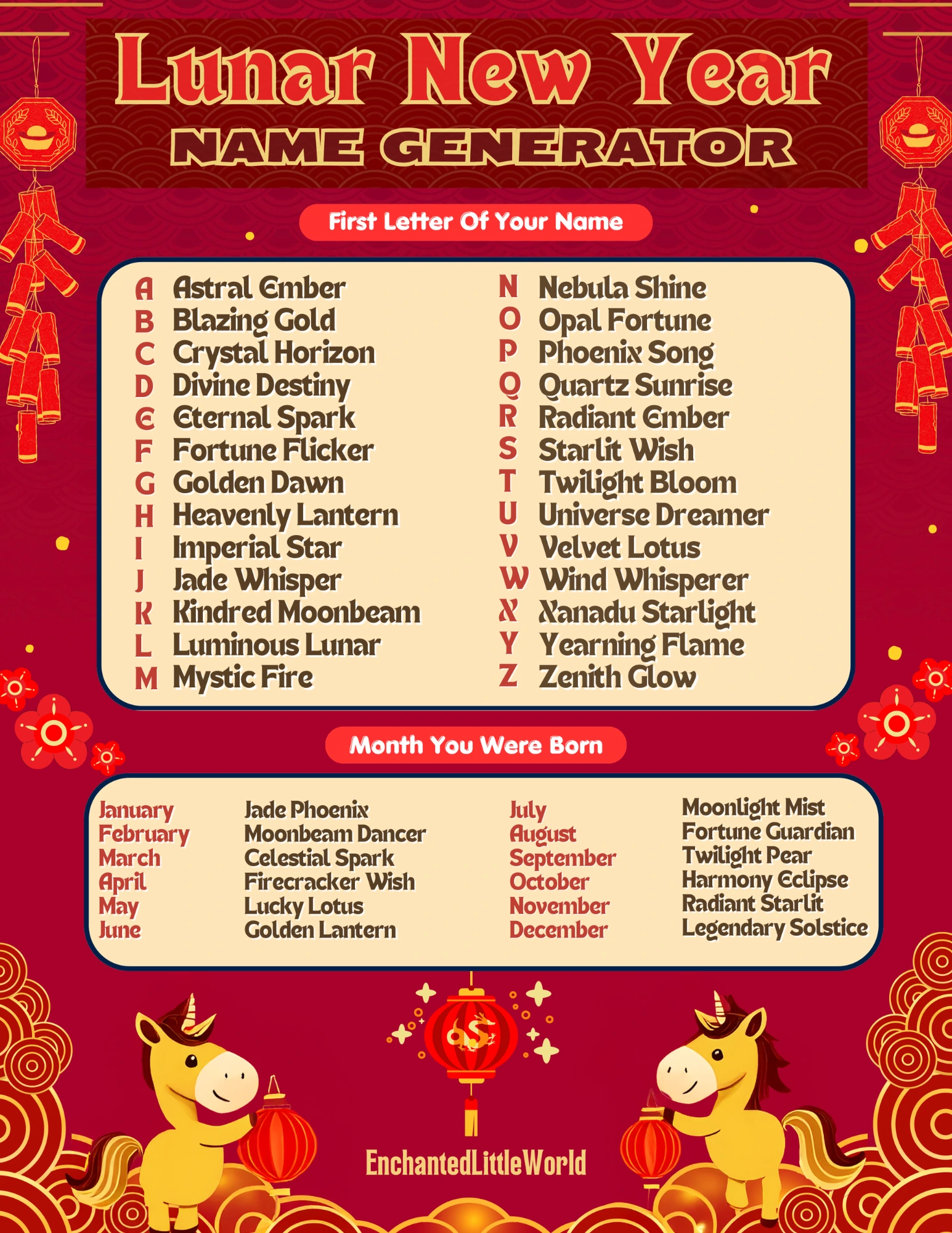 🌸 Match Your Birth Month — Follow the grid to your birth month to reveal the second half of your name, creating a silly combo like “Cuddly Jelly Bean”!