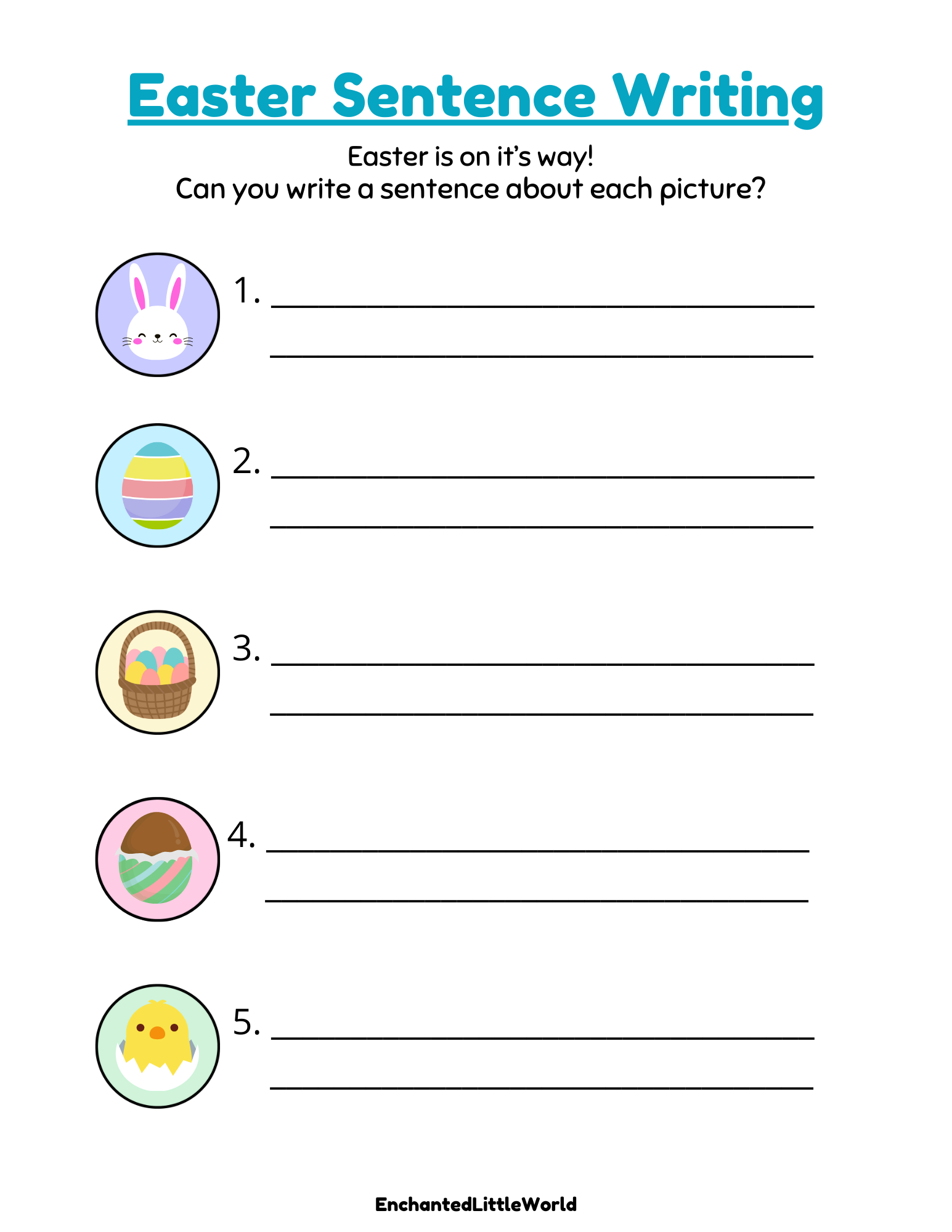 Print your own Easter sentence writing worksheet today and give young learners a seasonal reason to practice their writing! 🖨️