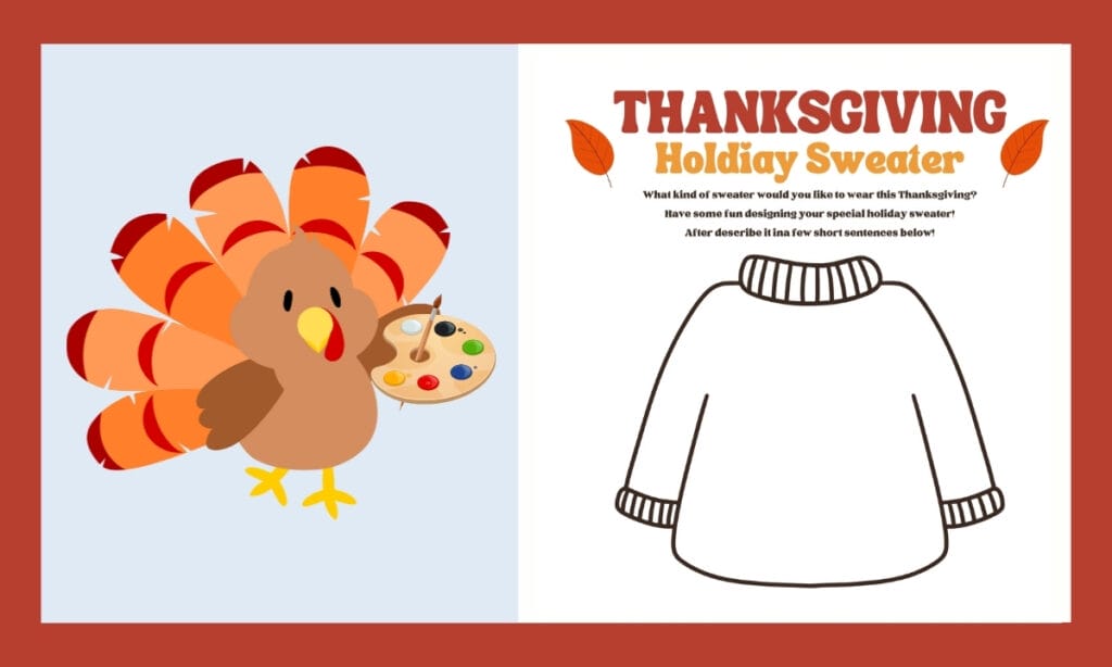 Kids can design their own unique holiday sweater for Thanksgiving, adding colors, patterns, and festive details to make it extra special. 🎨