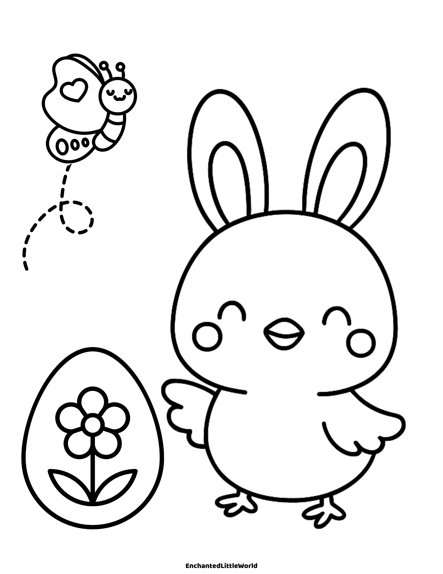This cute Easter coloring scene is ideal for toddlers and preschoolers who are just getting started with coloring—helping build fine motor skills and creativity while celebrating the season.