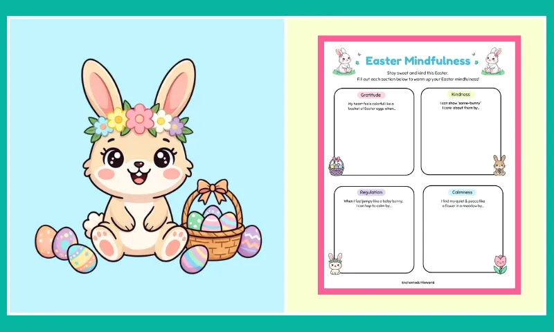 Bring a touch of heart-centered reflection to your Easter with this free printable Easter SEL worksheet for kids, designed to help little ones explore “Easter Mindfulness” in a an engaging and festive way. 🐰