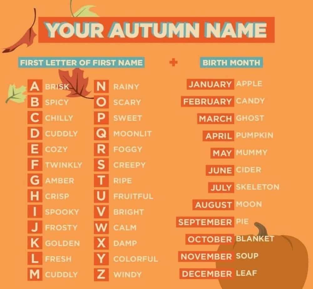 Discover your cozy, whimsical Fall name to spread some seasonal smiles. 🍁