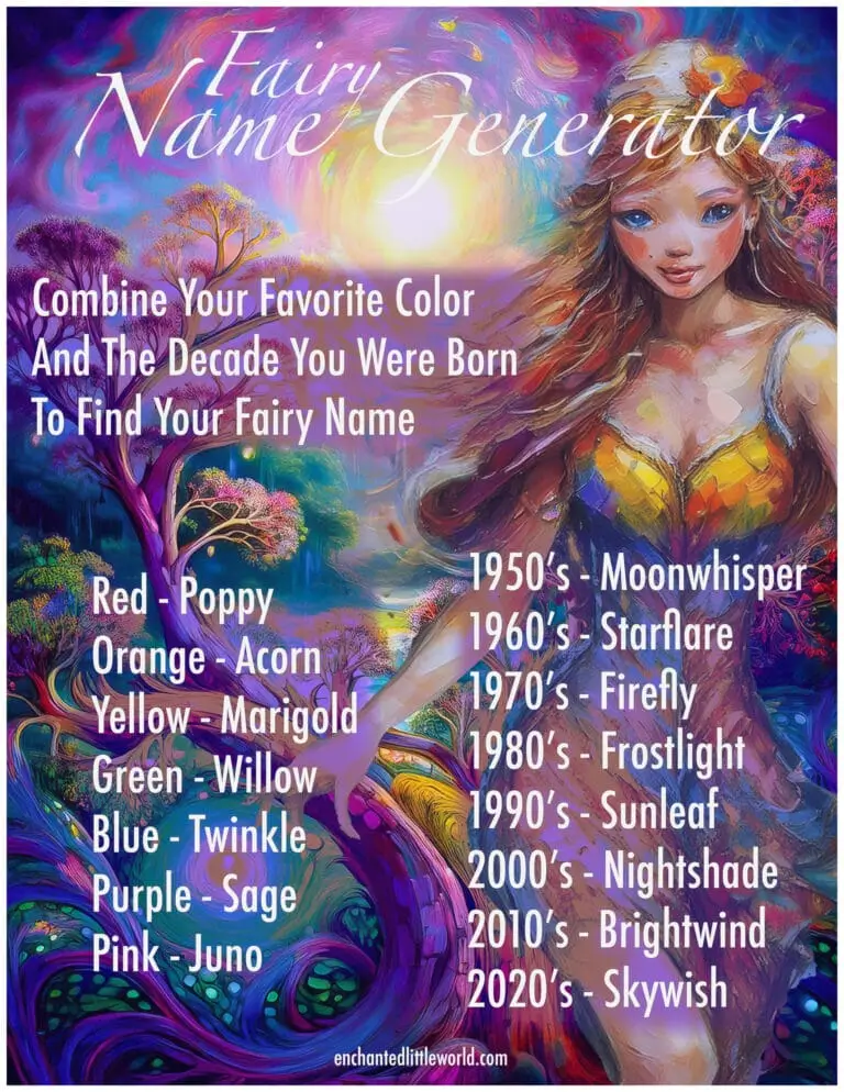 Discover your enchanted fairy name with our Free Printable Fairy Name Generator! 🧚‍♀️