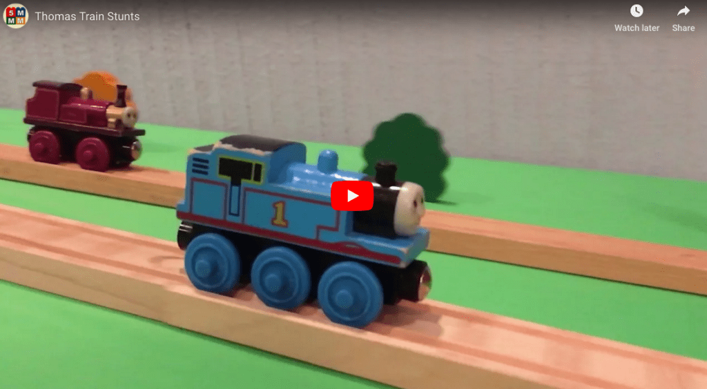 Thanks to the creativity and patience of 5MadMovieMakers. the iconic and classic Thomas the Tank Engine is the star of an action-packed stunt video filled with jumps and tricks and a feature by his pal the Red Engine James!
