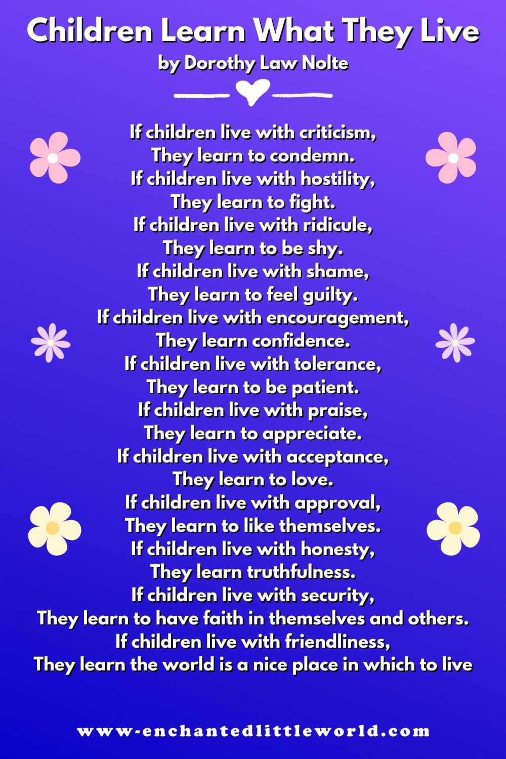 This powerful and inspiring poem was written by Dorothy Law Nolte in 1954.
