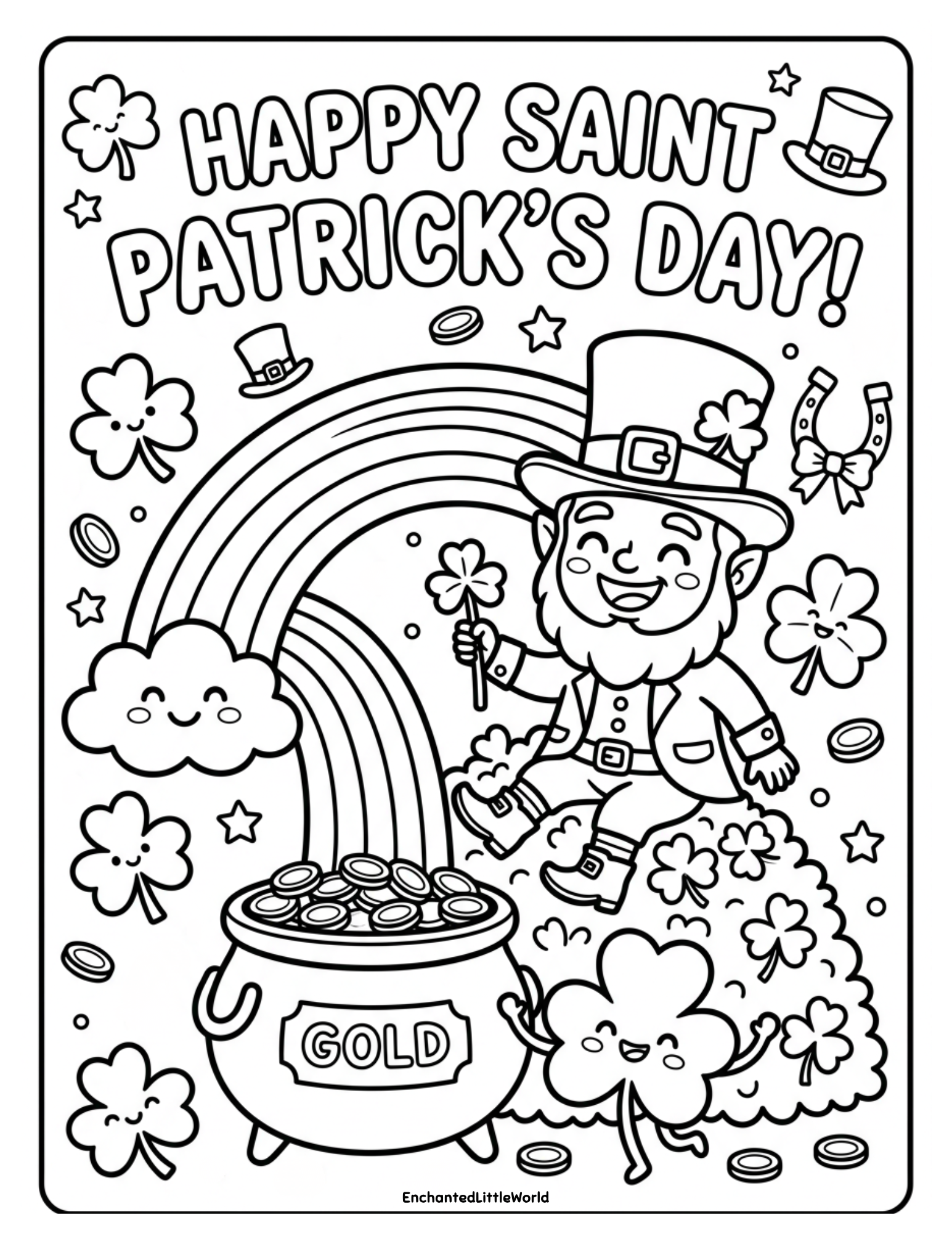 This magical Saint Patrickโs Day printable is designed to spark curiosity and holiday excitement through a sweet creative activity. Coloring these 10 adorable designs is a joyful way to celebrate the season while helping kids engage their imagination and holiday spirit.