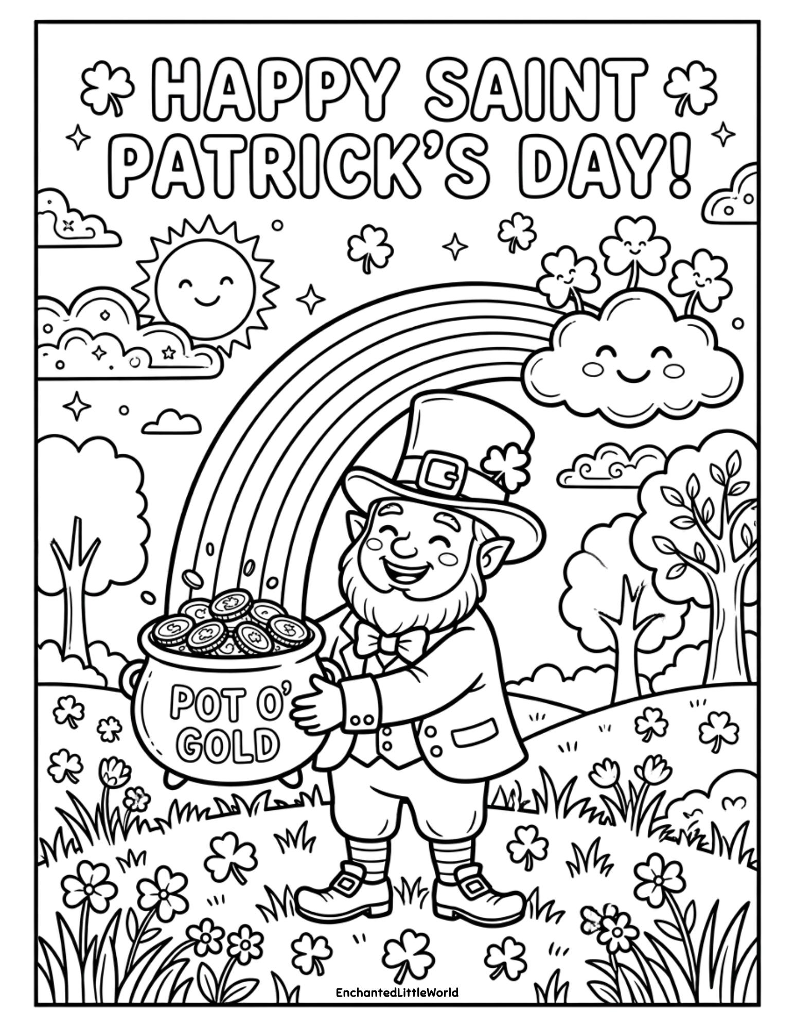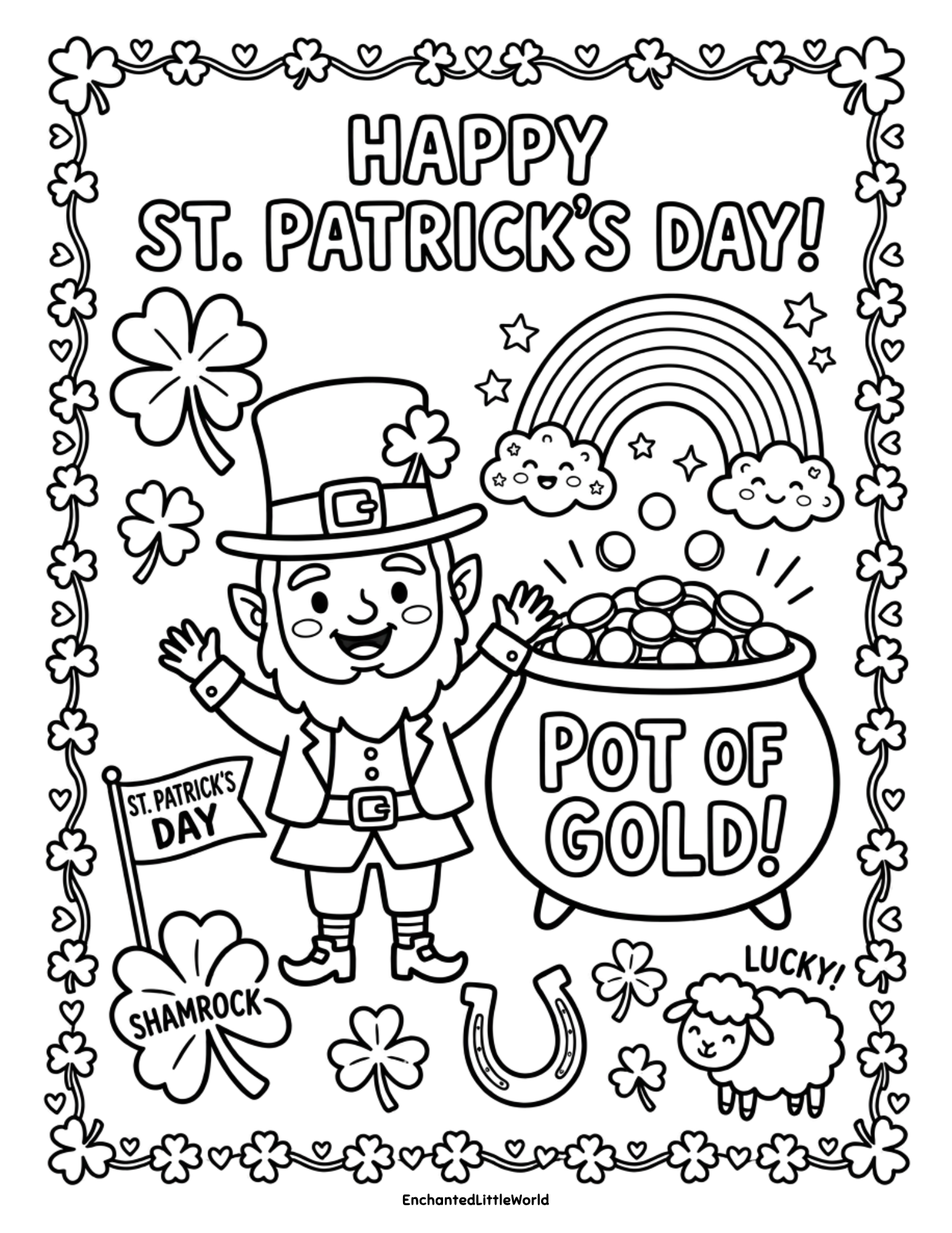This free Saint Patrickโs Day printable set is a playful way to spark holiday wonder while celebrating the season of luck. Children can enjoy coloring these 10 whimsical scenes featuring Lucky McRainbow and his friendsโturning a simple Saint Patrickโs Day surprise into memorable Saint Patrickโs Day magic!