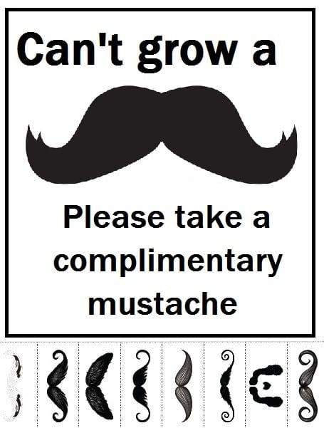 Spread some smiles with this hilarious Free Moustache printable sign.