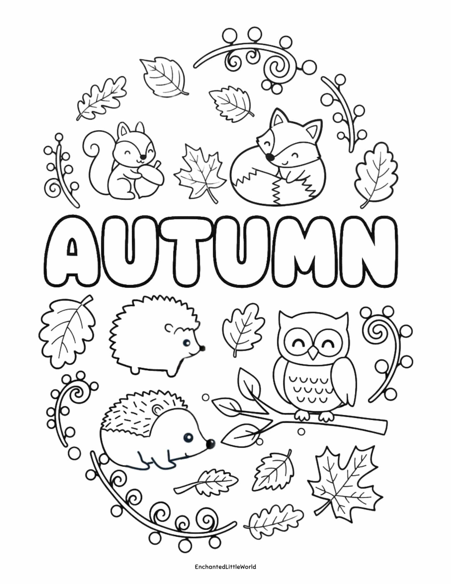 With pumpkins, mushrooms, an owl, and falling leaves, it captures everything magical about fall coloring pages for kids and cozy afternoons.