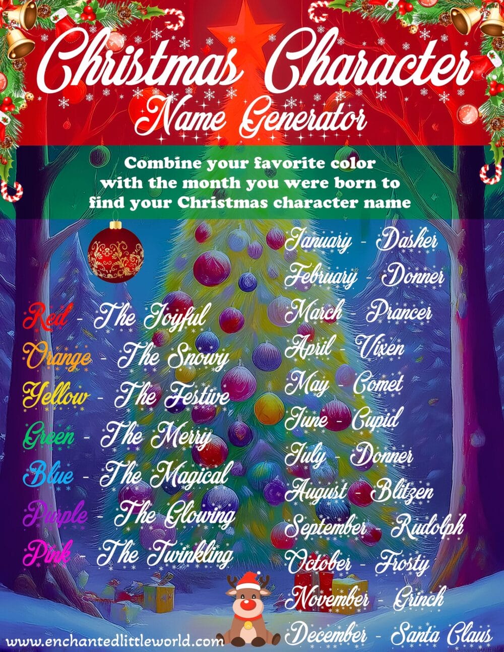 Are you “The Joyful Rudolph” or maybe “The Magical Comet”? The possibilities are endless and full of festive cheer!