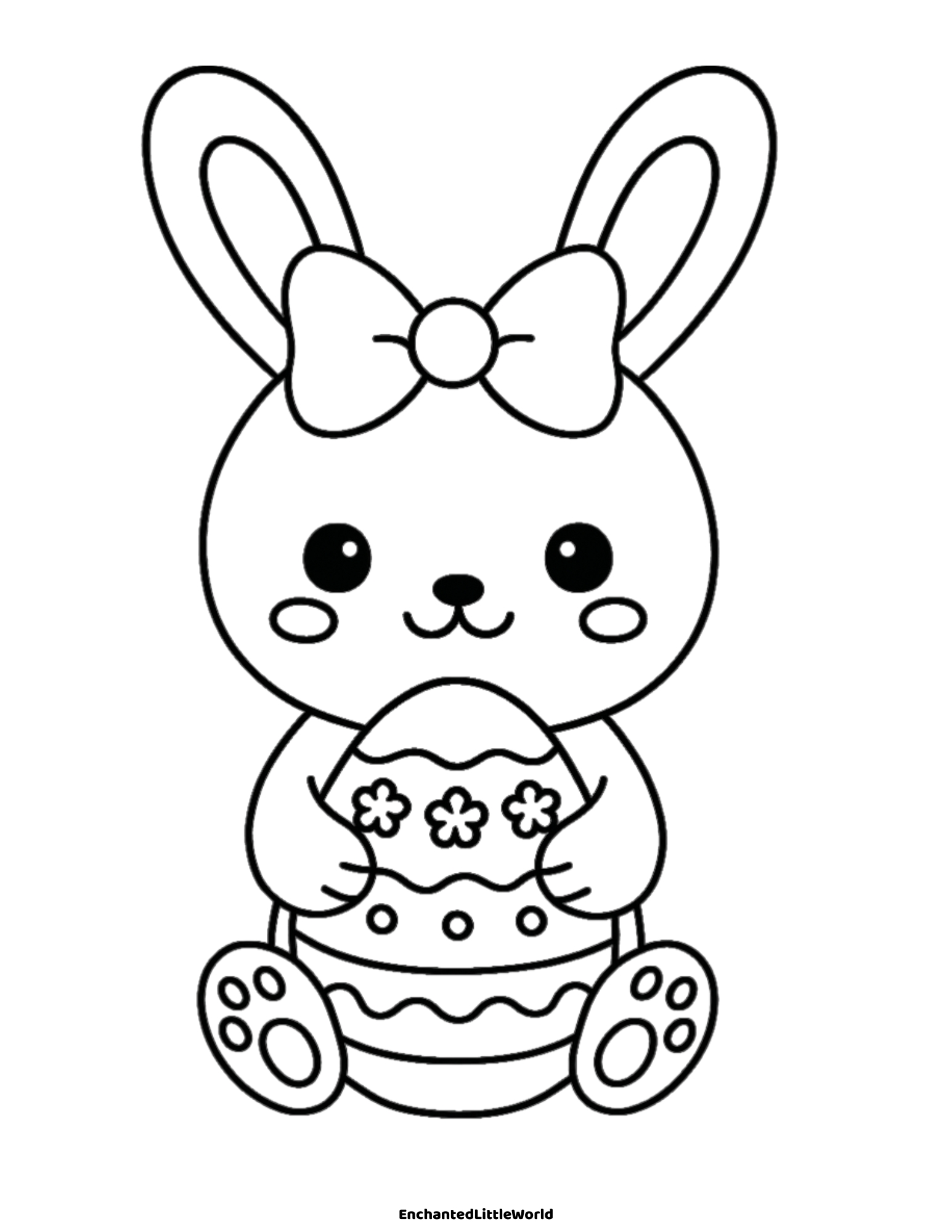 This free printable Easter coloring page features an adorable bunny holding an Easter egg—perfect for little hands to color this spring! 🐰