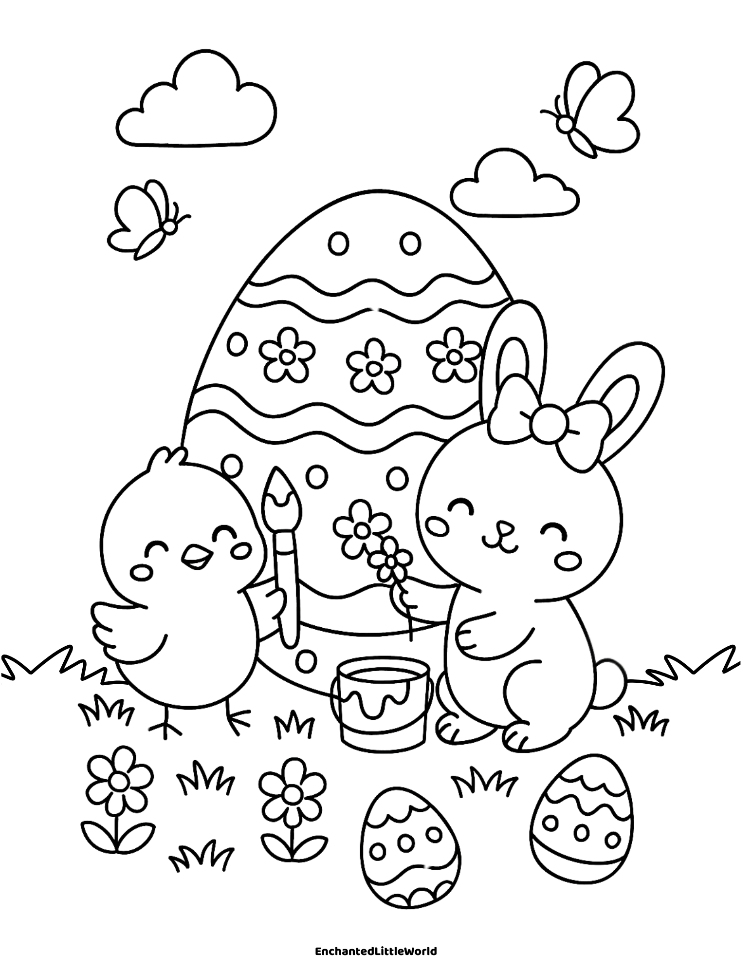 This free printable Easter coloring page features an adorable Easter Bunny and Easter chick—kids will love bringing it to life in their Easter coloring! 🐰🌷