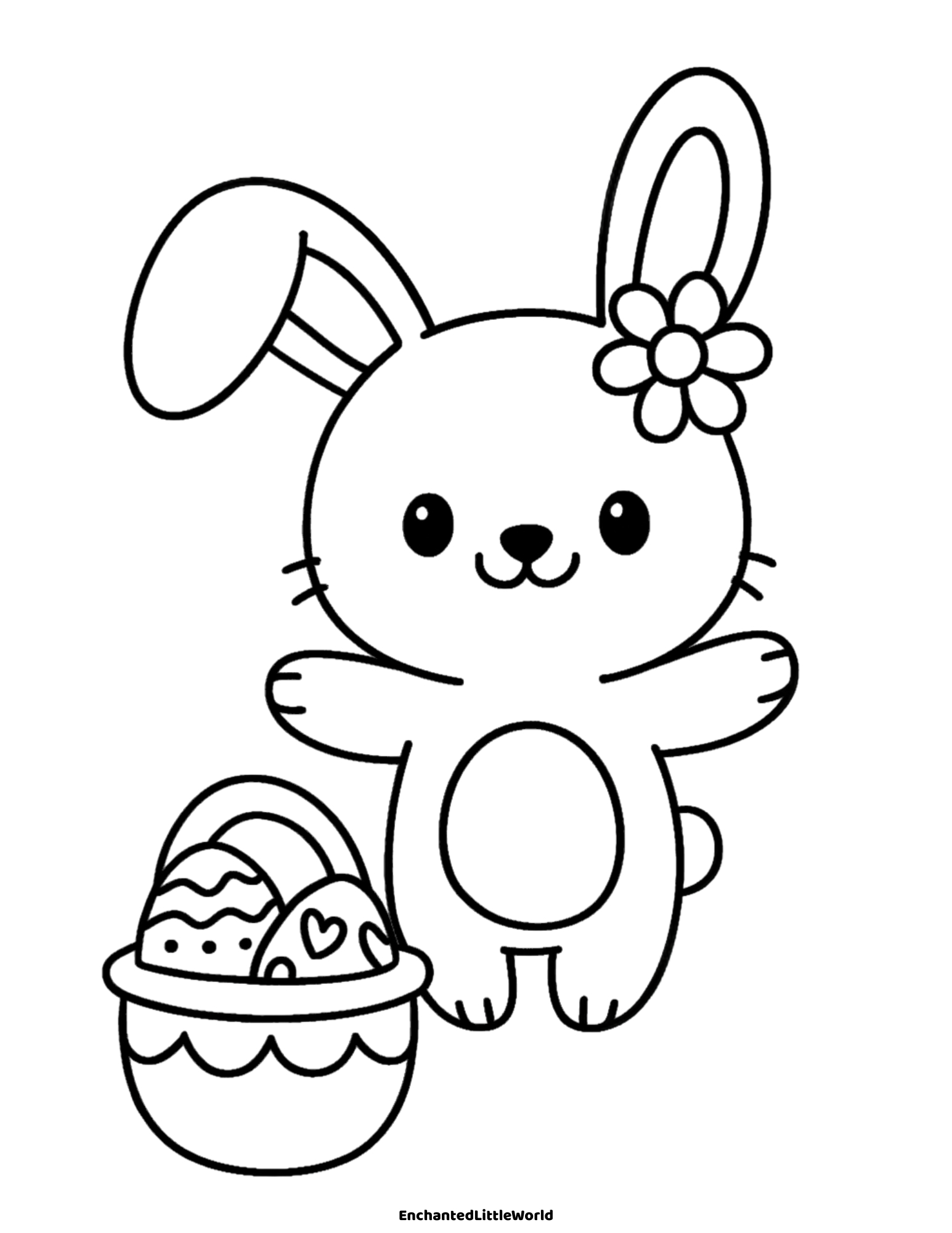 This free printable Easter coloring page features an adorable Easter bunny with an Easter Egg Basket—perfect for little hands to color this Easter! 🐰