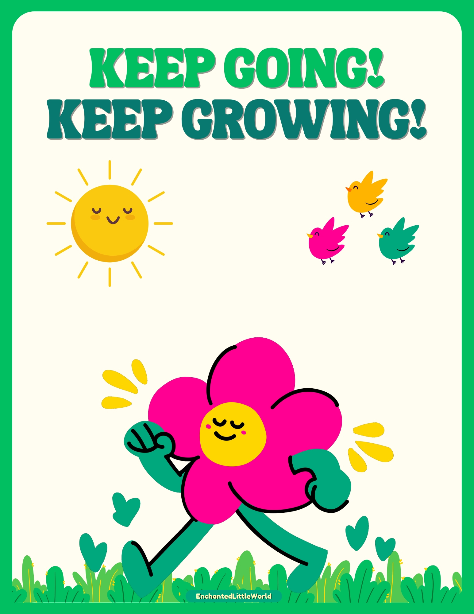 🌸 Promotes Persistence & Self-Confidence: The inspiring message “Keep Going! Keep Growing!” motivates kids to believe in their abilities and keep pushing forward.