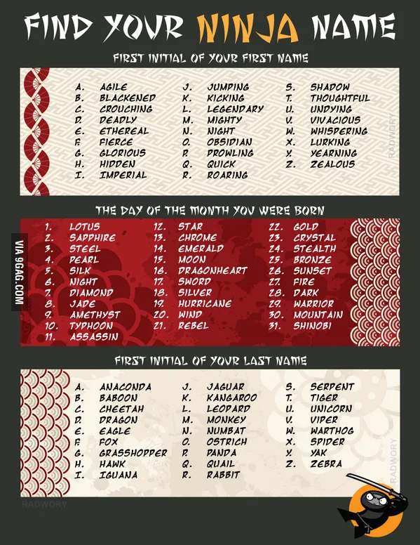 Simply combine the first letter of your name with the month you were born to reveal your very own Ninja identity