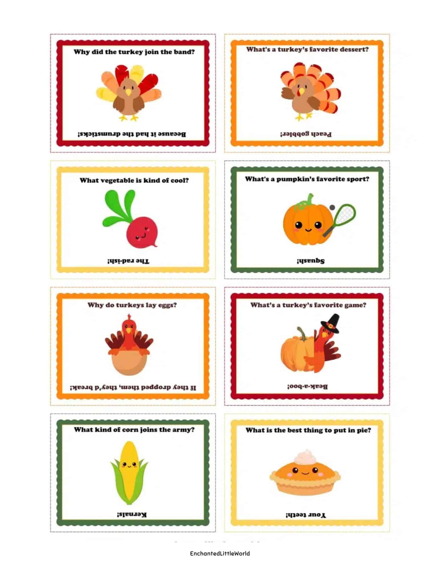 Print your free Thanksgiving jokes printable below using the button!