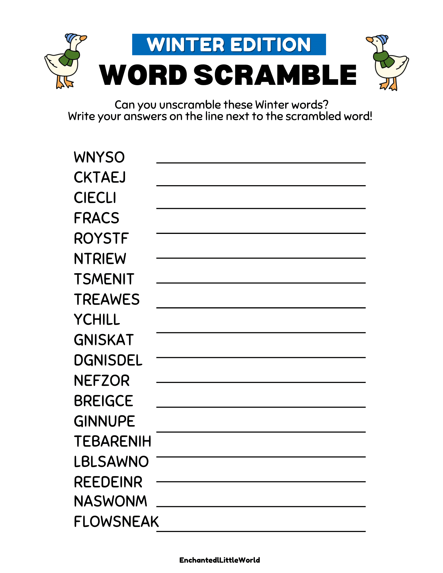 Print your free Winter Word Scramble below using the button!