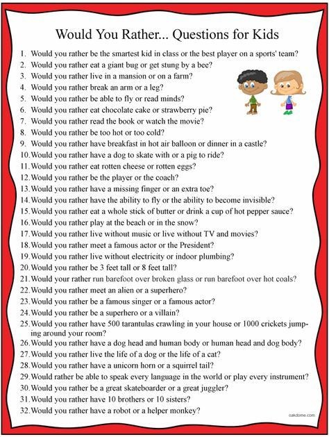 These questions are safe and silly, perfect for entertaining any kids, or finding out more information about a friend or partner!