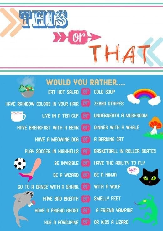 Kids are completely infatuated with the classic “Would You Rather” game these days. Look for the printable links below each quiz.
