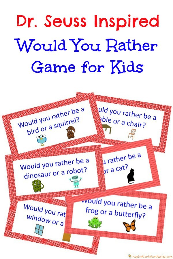 These fun printable Dr.Seuss inspired would you rather questions were created by Inspiration Laboratories and can be printed out here.